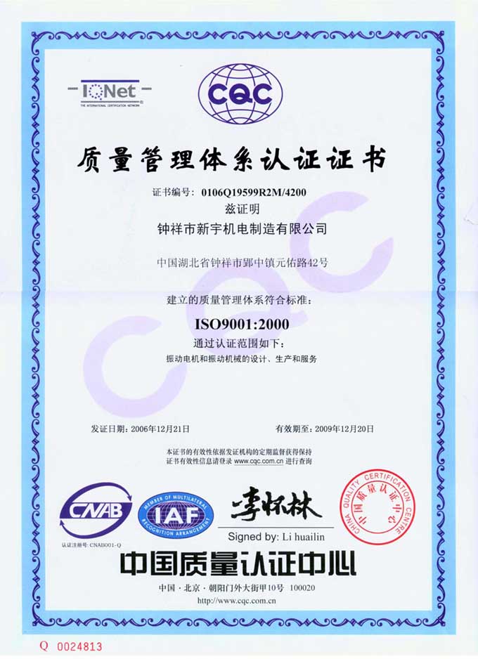 9000質(zhì)量管理體系認證證書