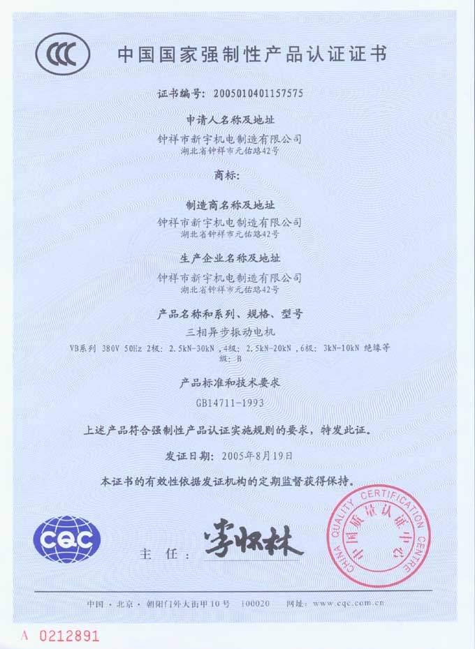 CQC中國國家強制性產(chǎn)品認證證書